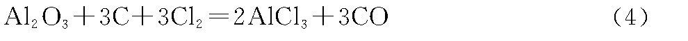氧化鋁法是以氧化鋁、氯氣及碳三者為原料共同反應(yīng)制取無(wú)水三氯化鋁。國(guó)外研究者20世紀(jì)60年代后期曾對(duì)氧化鋁法制無(wú)水三氯化鋁的反應(yīng)機(jī)理進(jìn)行了研究, 他們認(rèn)為氧化鋁法制無(wú)水三氯化鋁的反應(yīng)式為: