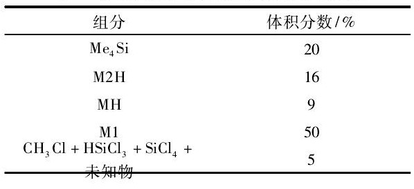 將低沸物與一甲基三氯硅烷 (M1) 混合并作為有機(jī)硅低沸物歧化反應(yīng)的原料, 各原料大致的體積分?jǐn)?shù)見(jiàn)表1。